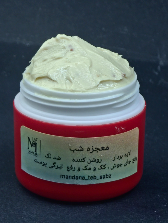 کرم معجزه شب لایه برداری ملایم روشن کننده ی پوست تنظیم چربی پوست کمک ب بسته شدنِ منافذِ باز پوست از بین بردن لک و جای جوش: 20 گرم